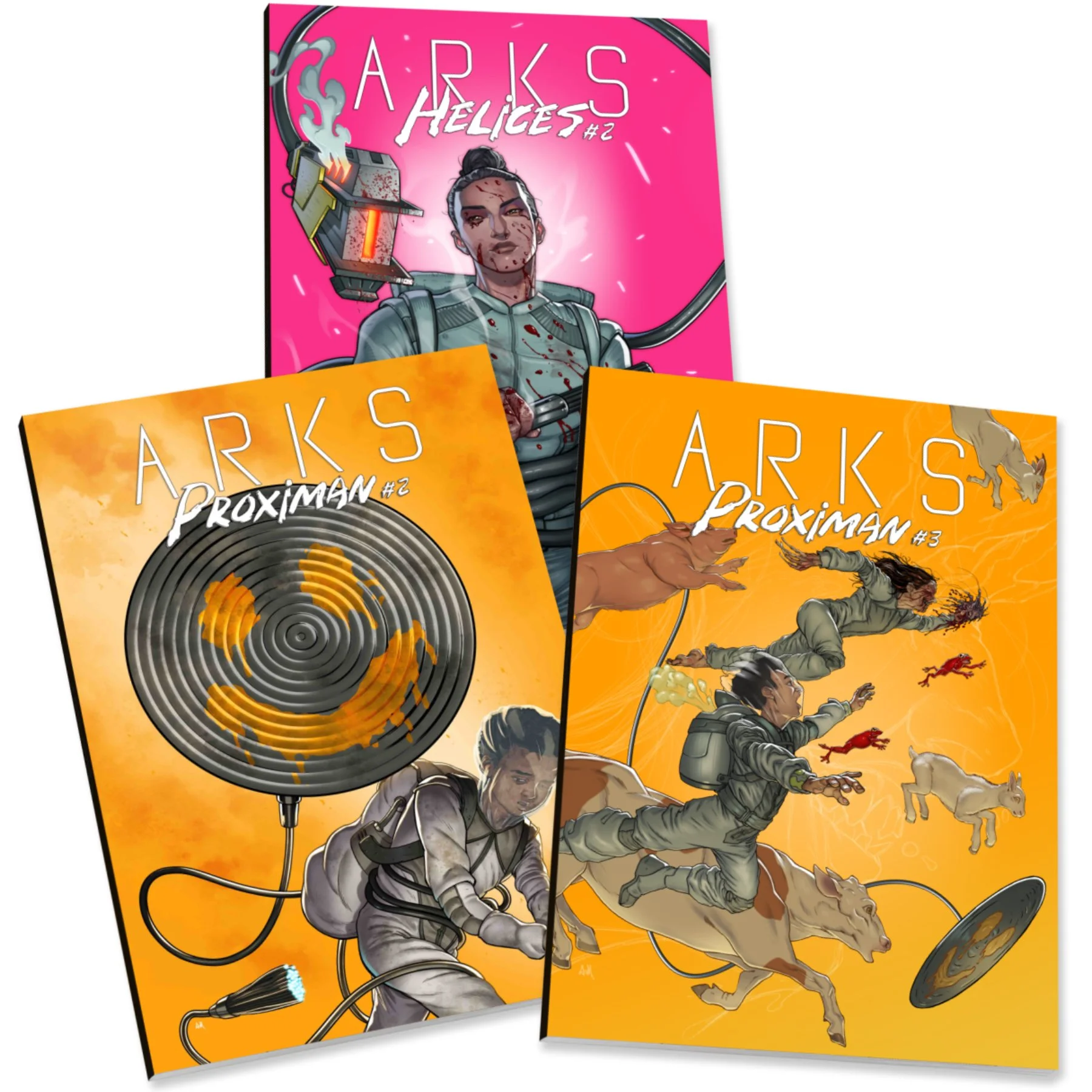 Arks Helices and Arks Proximan are mind-melting, hard sci-fi and probably the best things I have ever written… and they’re also more accessible. They’re a worm hole that'll help us reach more readers, build momentum on Kickstarter through 2026, and put us in a position to make Arks Issue Six the way it needs to be made in 2027.
